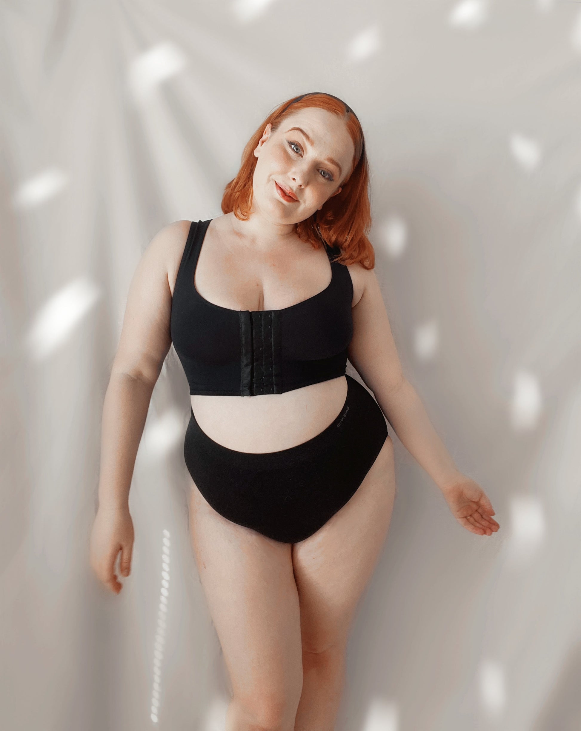 The Bra Vest will help to create cleavage, tuck in wings/back fat, and improve your upper body posture.