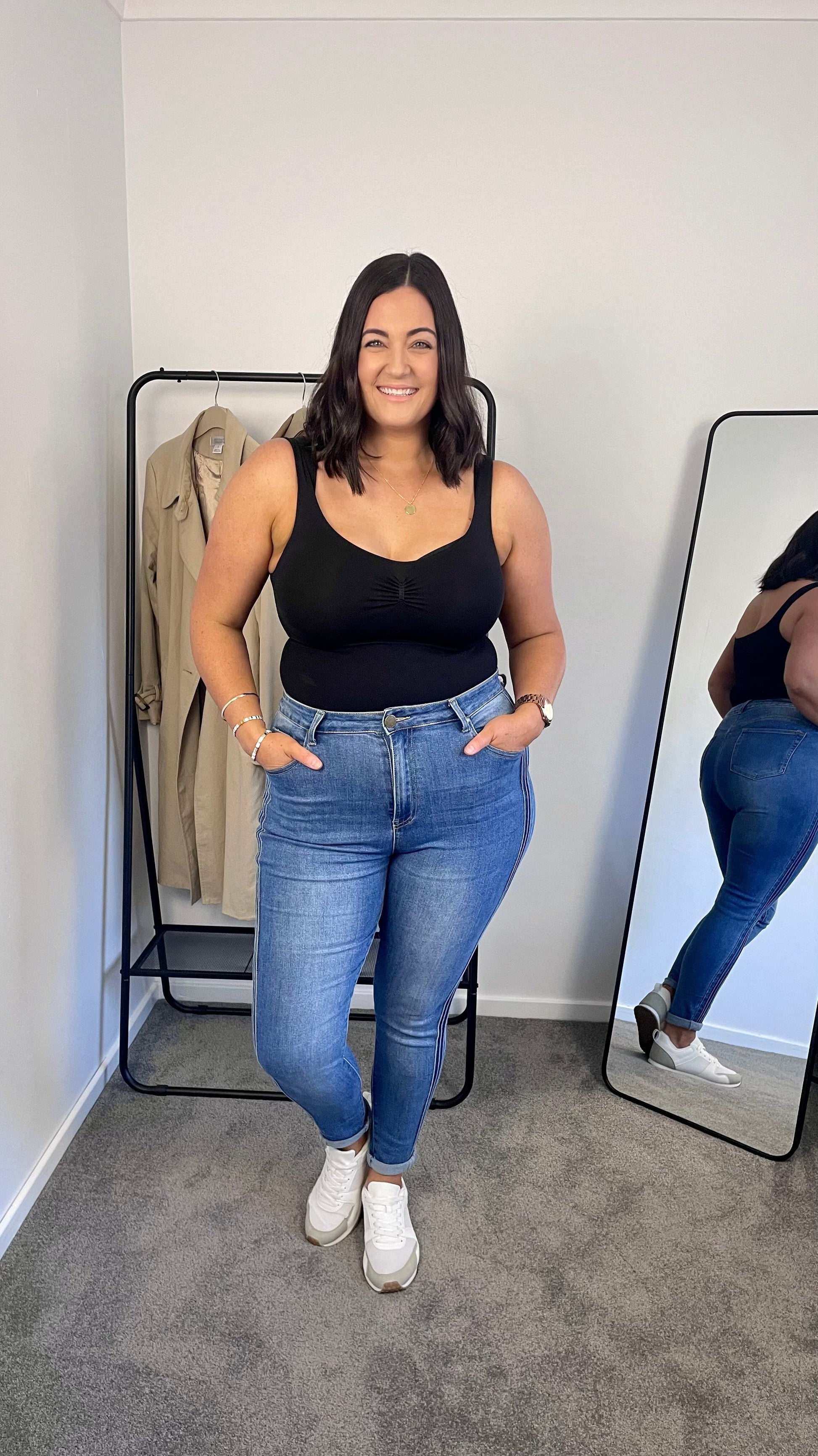 Model Alisha. Height 167cm, weight 67kg, hips 99cm, bust 93cm, wear size M.